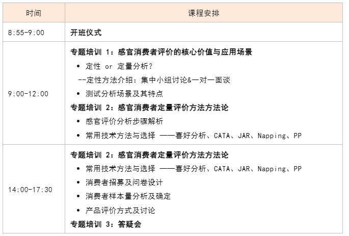 適用對象:有一定基礎(chǔ)的感官分析師、消費(fèi)者研究人員、企業(yè)研發(fā)人員、第三方檢測人員、高校老師、市場及公司管理者等