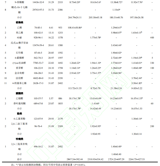 表1 石榴酒中揮發(fā)性成分的GC-MS分析結(jié)果