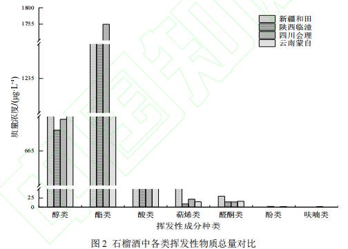 石榴營養(yǎng)豐富,抗氧化能力強,具有調(diào)節(jié)血壓、抗衰老、抗菌、抗癌等功效,由于遺傳特性、環(huán)境因子和栽培措施等因素的影響,造成不同產(chǎn)地的石榴原料之間香氣成分和品質(zhì)的差異,釀酒原料的品質(zhì)對酒的品質(zhì)有較大影響。