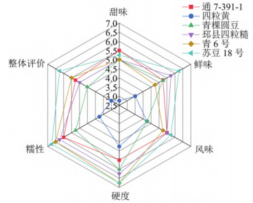 圖1 菜用大豆口感官評(píng)價(jià)的雷達(dá)圖