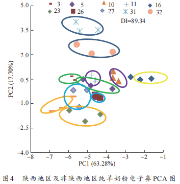 羊奶是最接近母乳的乳品,富含200多種營養(yǎng)素和生物活性物質(zhì),具有較高的生物利用度,是消費(fèi)者的理想食物。目前,羊奶市場(chǎng)的主要產(chǎn)品形式是羊奶粉,羊奶粉品牌的逐漸擴(kuò)增,使市場(chǎng)上的羊奶粉質(zhì)量評(píng)價(jià)成為值得關(guān)注的話題。本文對(duì)陜西地區(qū)和非陜西地區(qū)的產(chǎn)地來源,純羊奶粉、中老年配方羊奶粉、嬰幼兒配方羊奶粉、學(xué)生配方羊奶粉等常見羊奶粉產(chǎn)品種類,基于電子鼻、電子舌技術(shù)開展了市售羊奶粉質(zhì)量的評(píng)估檢測(cè)。