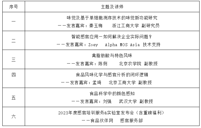 1天6場(chǎng)感官主題分享,包含人工+智能感官基礎(chǔ)(味覺、嗅覺)、食品風(fēng)味化學(xué)&儀器分析、色彩測(cè)量視覺應(yīng)用等多個(gè)主題分享,更有豐富的案例實(shí)踐分享,還有2023年度感官培訓(xùn)服務(wù)/實(shí)驗(yàn)室服務(wù)發(fā)布會(huì)等多個(gè)環(huán)節(jié),年初為每一位食品人提供線上免費(fèi)感官學(xué)習(xí)交流的機(jī)會(huì),我們一起,充好了電,蓄好了能,2023整裝待發(fā)!
