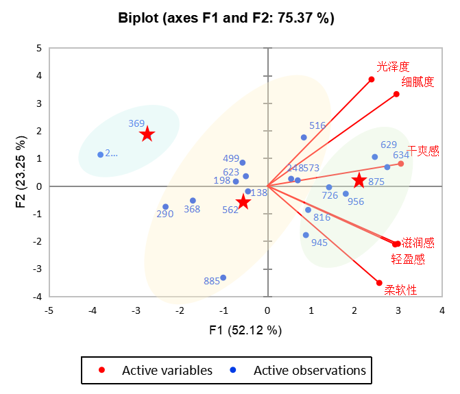 即使完成這樣巨大體量的測試,在化妝品快速更新迭代的市場,先前耗費大量的時間和人力得到的測試結果會有所偏差。我們需要花費盡可能短的時間來快速把握消費者的偏好,這就需要在大規(guī)模消費者調(diào)研前精簡測試品數(shù)量,選取具有代表性的測試產(chǎn)品,分析消費者對代表性測試產(chǎn)品的偏好等,進行人群畫像等深入的數(shù)據(jù)挖掘,其中運用感官分析的方法,不僅可以在短時間內(nèi)定位每款測試品的膚感,而且為后續(xù)消費者調(diào)研精簡測試產(chǎn)品提供有力的數(shù)據(jù)支持。