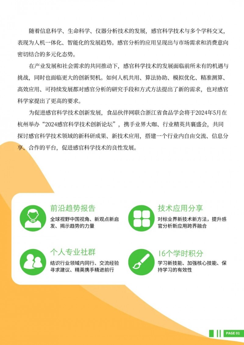 為促進感官科學技術(shù)創(chuàng)新發(fā)展,食品伙伴網(wǎng)聯(lián)合浙江省食品學會將于2024年5月在杭州舉辦“2024感官科學技術(shù)創(chuàng)新論壇”,攜手業(yè)界大咖、行業(yè)精英共襄盛會,共同探討感官科學技術(shù)領(lǐng)域的新科研成果、新技術(shù)應用,搭建一個行業(yè)內(nèi)自由交流、信息分享、合作的平臺,促進感官科學技術(shù)的良性發(fā)展。