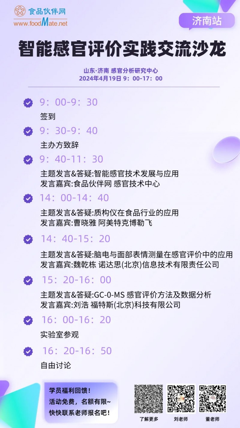 歡迎食品、原料、農(nóng)產(chǎn)品、預(yù)制菜、日化、醫(yī)藥等行業(yè)的感官評(píng)測(cè)人員、品管品控人員、新產(chǎn)品開(kāi)發(fā)人員,高校、科研院所等從事感官分析的研發(fā)技術(shù)人員,智能儀器機(jī)械設(shè)備廠(chǎng)家等相關(guān)人員報(bào)名參與。