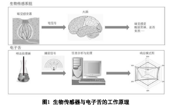 味道是檢測(cè)食物安全和質(zhì)量的重要特征之一,味覺系統(tǒng)是天然生化感受系統(tǒng)中重要組成成部分之一,也是生物體適應(yīng)環(huán)境和生存發(fā)展的重要生化物質(zhì)基礎(chǔ),可以實(shí)現(xiàn)在短時(shí)間內(nèi)精確檢測(cè)和識(shí)別成千上百的不同呈味物質(zhì)??茖W(xué)工作者們利用天然化學(xué)感受器的原理結(jié)合現(xiàn)代技術(shù)研發(fā)出一類仿生味覺傳感系統(tǒng),可以對(duì)呈味物質(zhì)進(jìn)行人工智能檢測(cè)和識(shí)別。