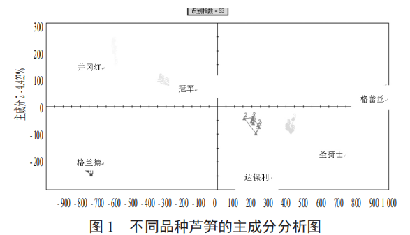 不同品種蘆筍的主成分分析圖見圖 1