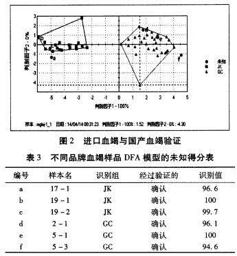 國產(chǎn)和進(jìn)口血竭的DFA判別模型的建立