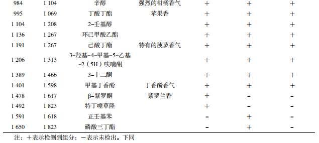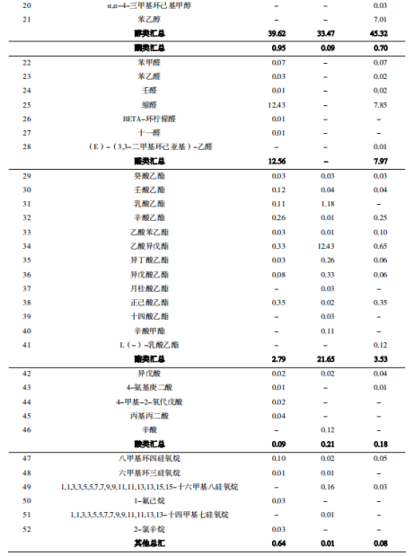 表3 不同發(fā)酵方式的柿子酒樣香氣成分的GC-MS分析結(jié)果