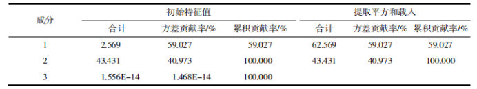 圖5 不同發(fā)酵方式的柿子酒感官評價雷達圖 主成分分析 用SPSS軟件對表3中的數(shù)據(jù)進行主成分分析,得到兩個主成分,如表4所示。其中第一主成分貢獻率為59.027%、第二主成分貢獻率為40.973%。 表4 主成分分析中解釋的總方差