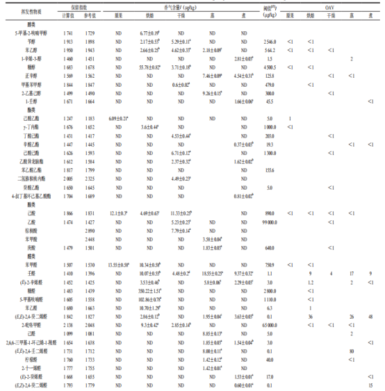 表2 不同預處理后沙棗中揮發(fā)性物質含量及OAV