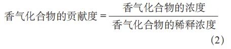 香氣化合物的貢獻度的計算公式為: