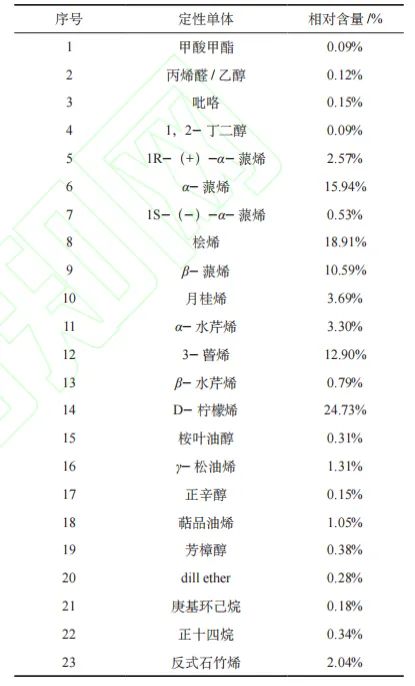 胡椒精油揮發(fā)性化合物定性分析