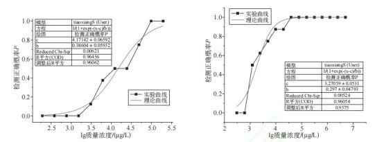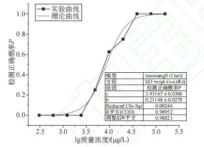 取P=0.5時的月桂烯濃度為檢測閾值。其檢測閾值為1864.61(μg/L)。