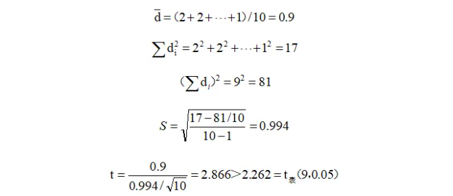 如果t>t表,則兩種食品之間存在顯著差別;如果t<t表,則兩個(gè)食品之間無(wú)顯著差別。