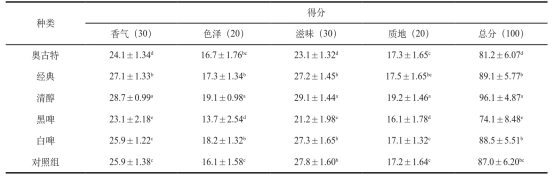 表2 不同啤酒對啤酒鴨的感官品質(zhì)影響