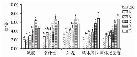 圖1 不同烹飪熟度的牛排感官評(píng)價(jià)